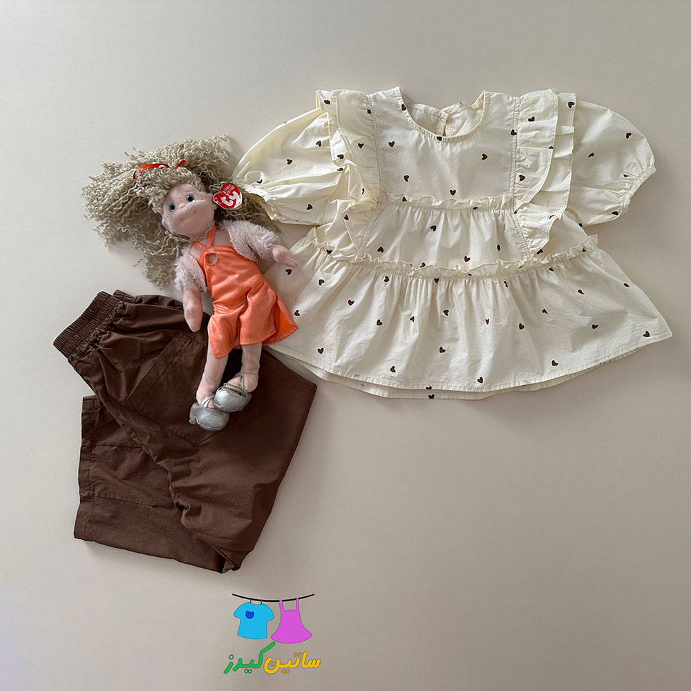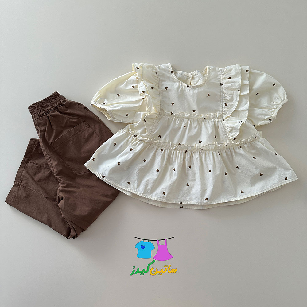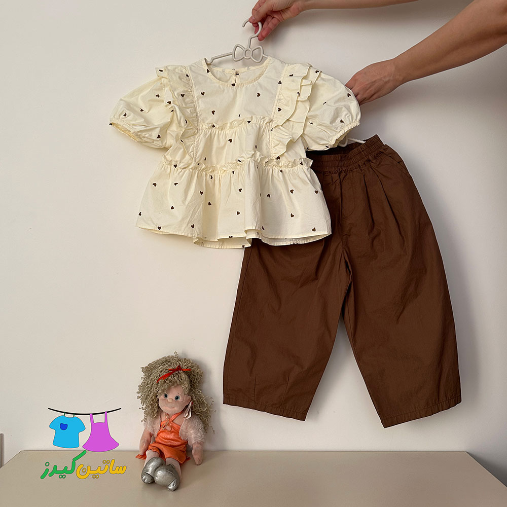 ست پیراهن و شلوار دخترانه بهاره قلب قلبی پنبه ای رنگ سال