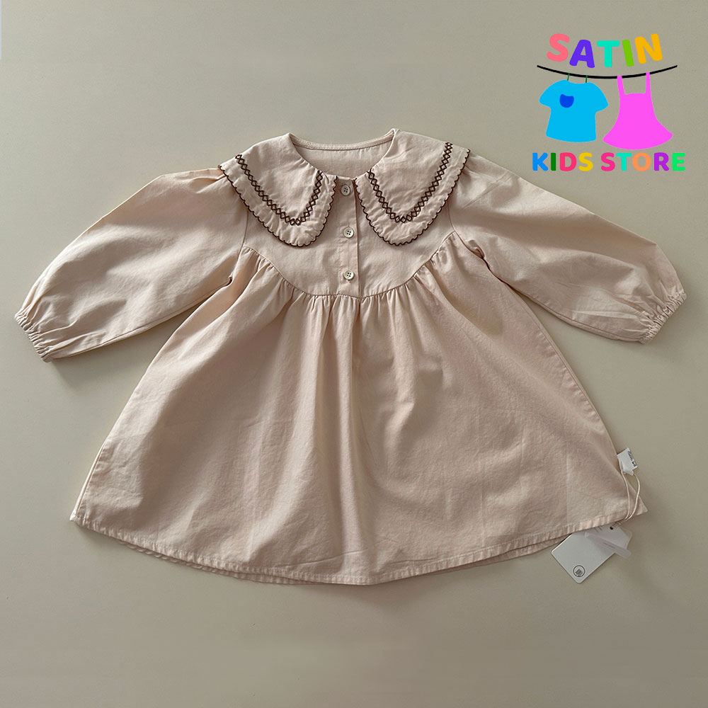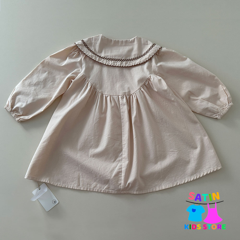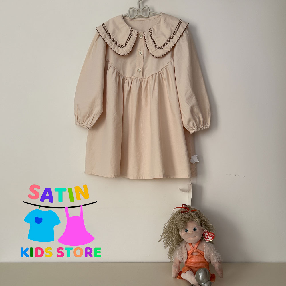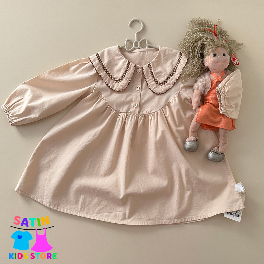پیراهن دخترانه چین دار آستین بلند رنگ سال