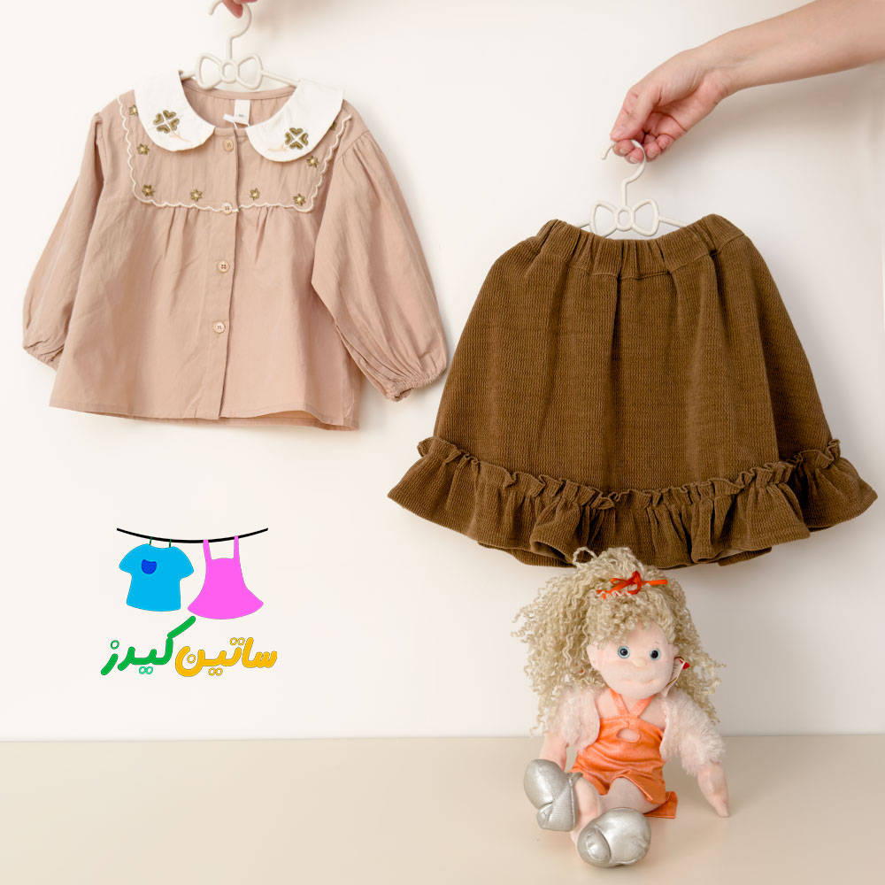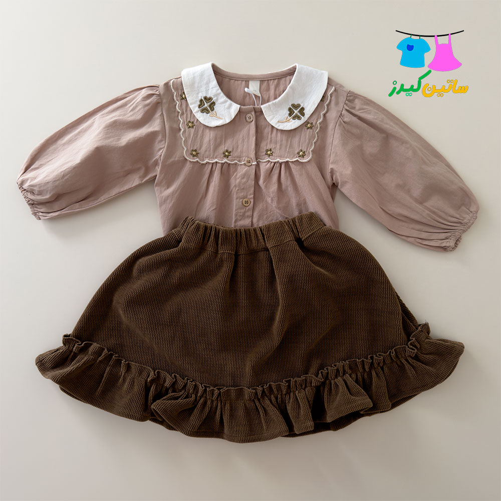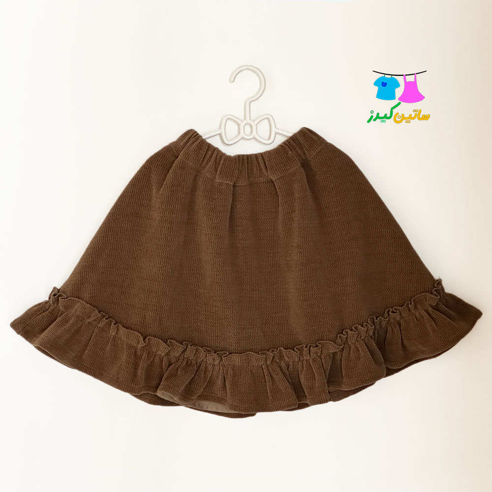 دامن مخمل کبریتی شکلاتی کوتاه دخترانه