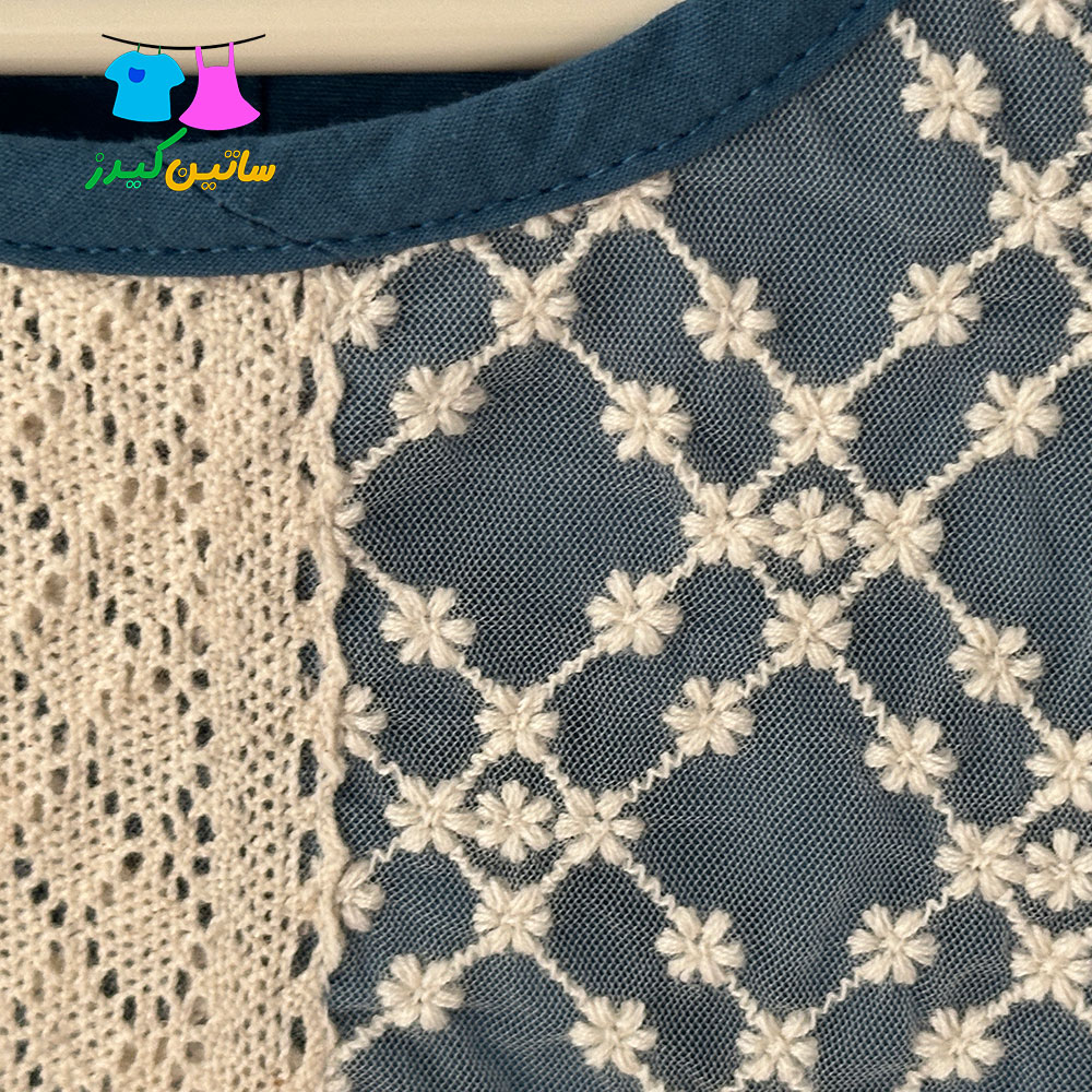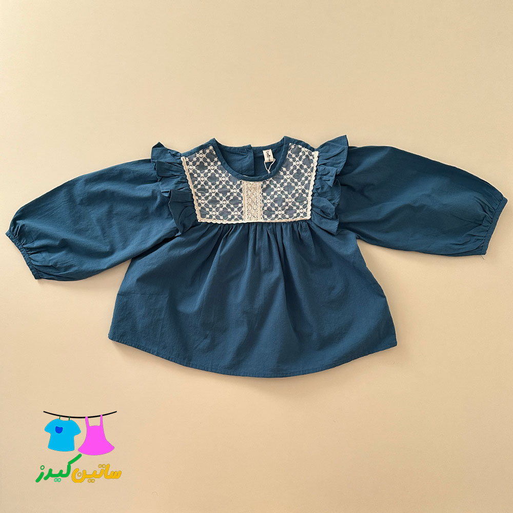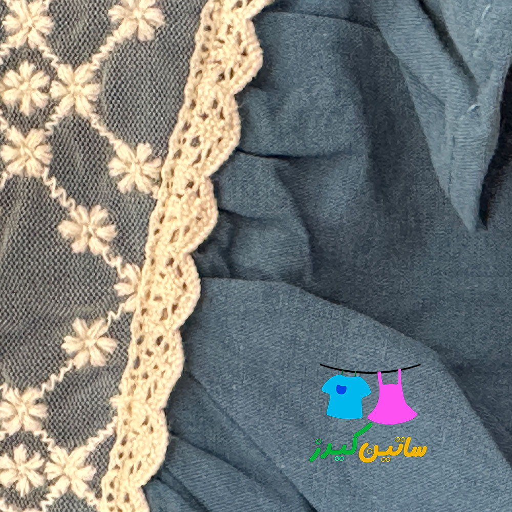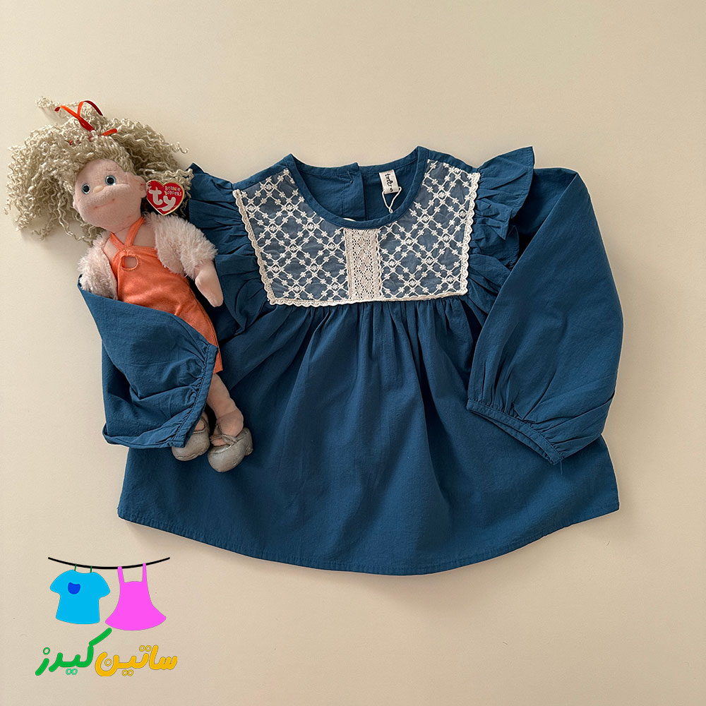 پیراهن چین دار دخترانه کوتاه آبی نفتی