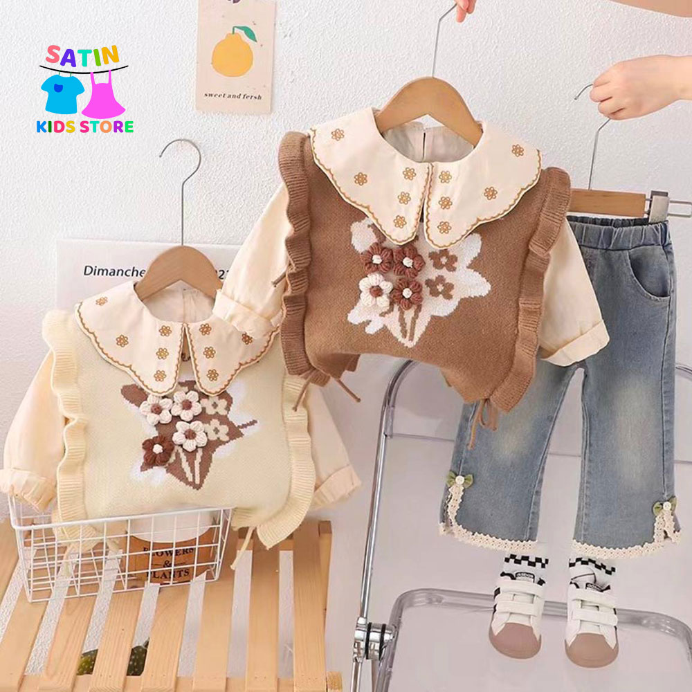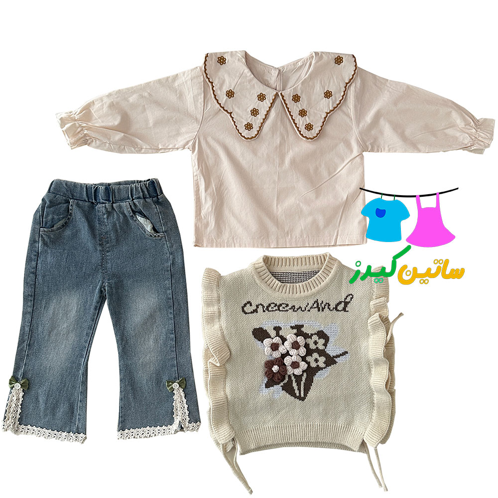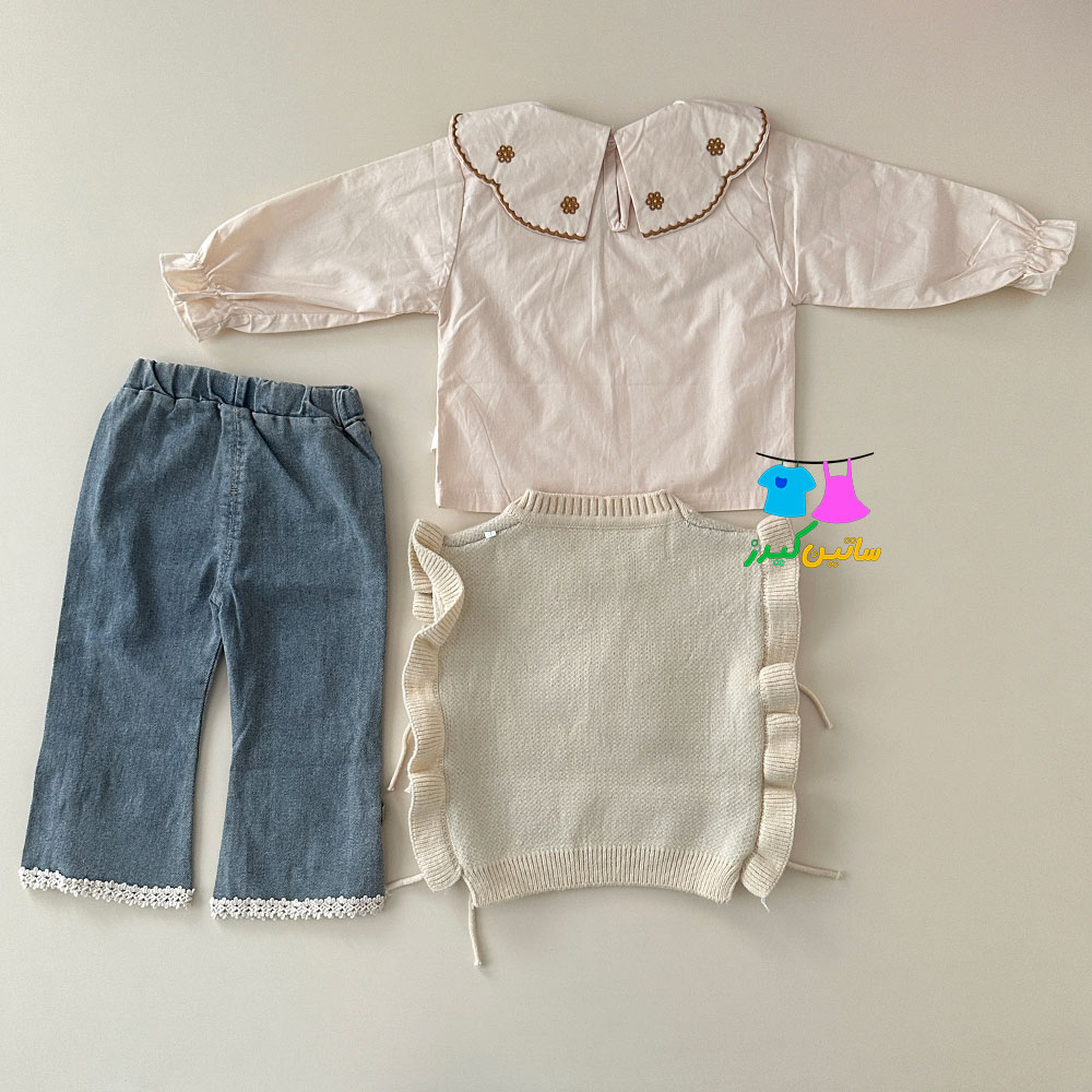 ست شیک بغل پاپیونی شومیز جین بافت رنگ سال