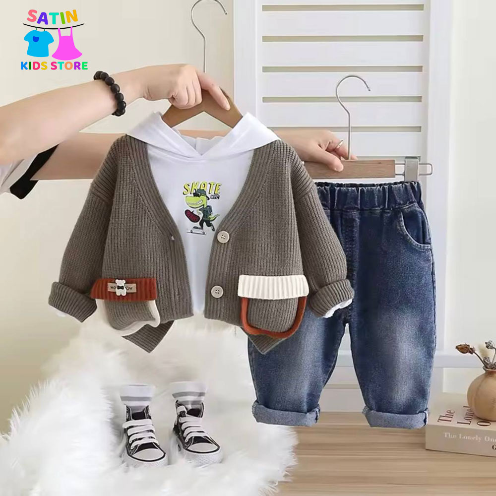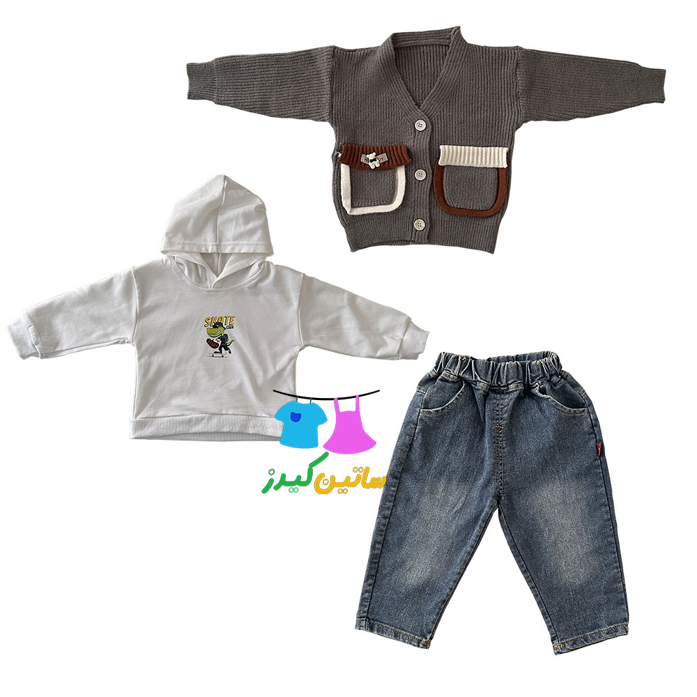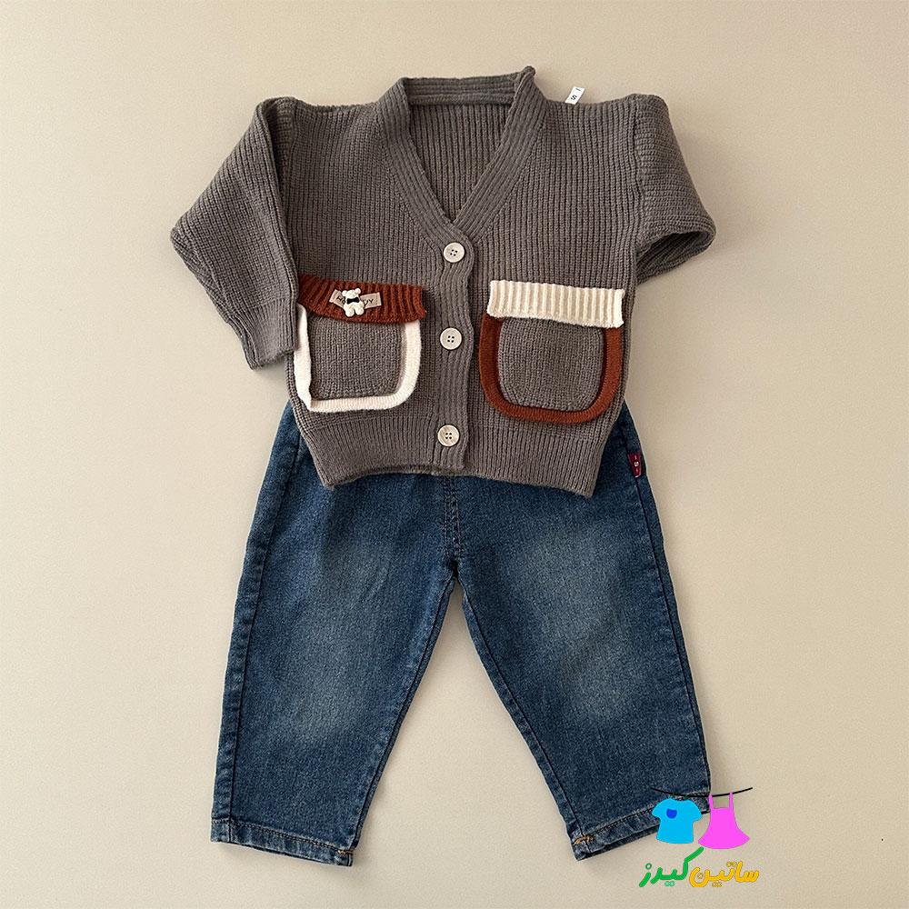 ست بلوز جلیقه بافت و جین وینتیج پسرانه